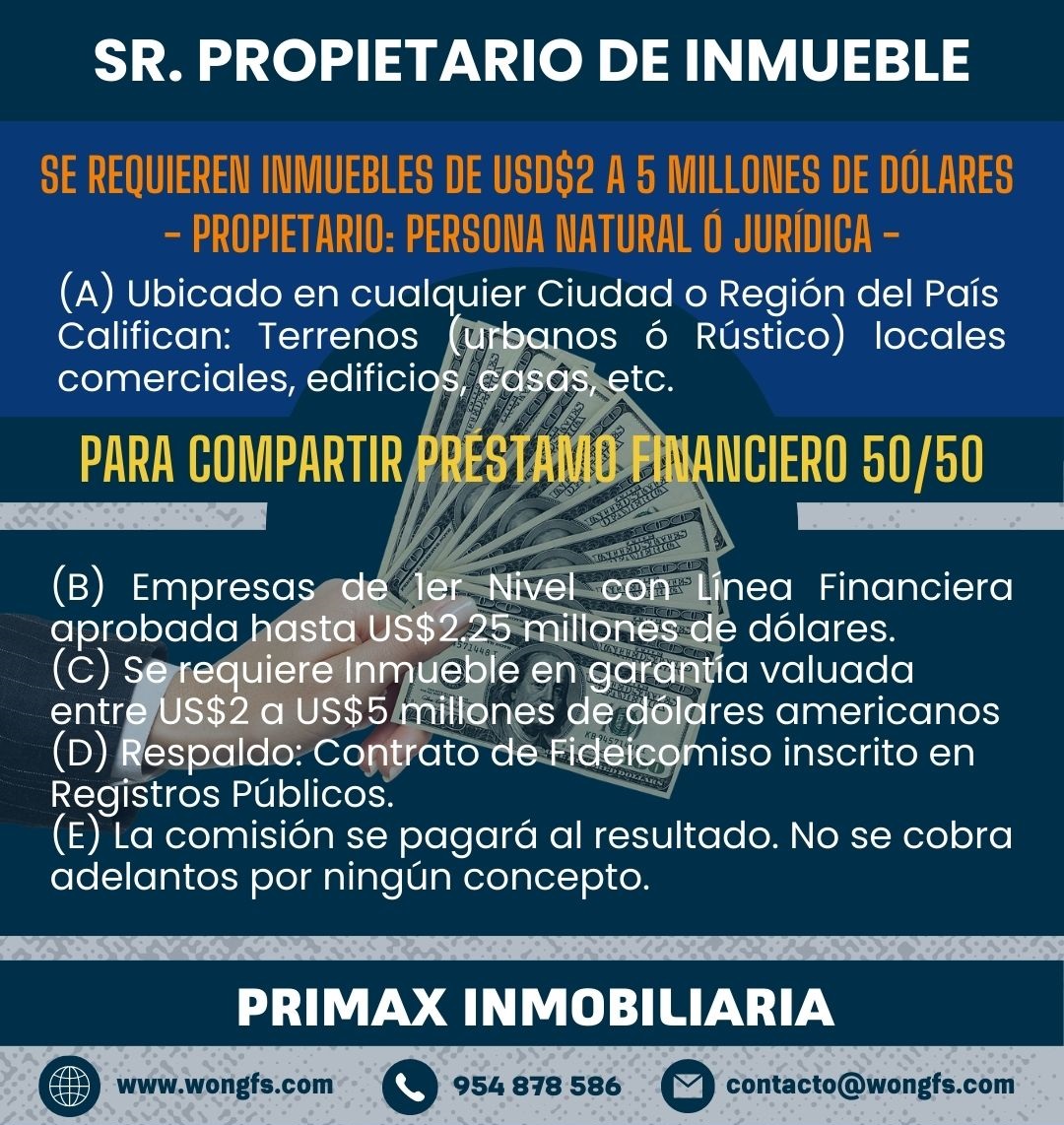 - Con garantía hipotecaria: Desde USD 50 mil hasta 1’250,000 dólares americanos.